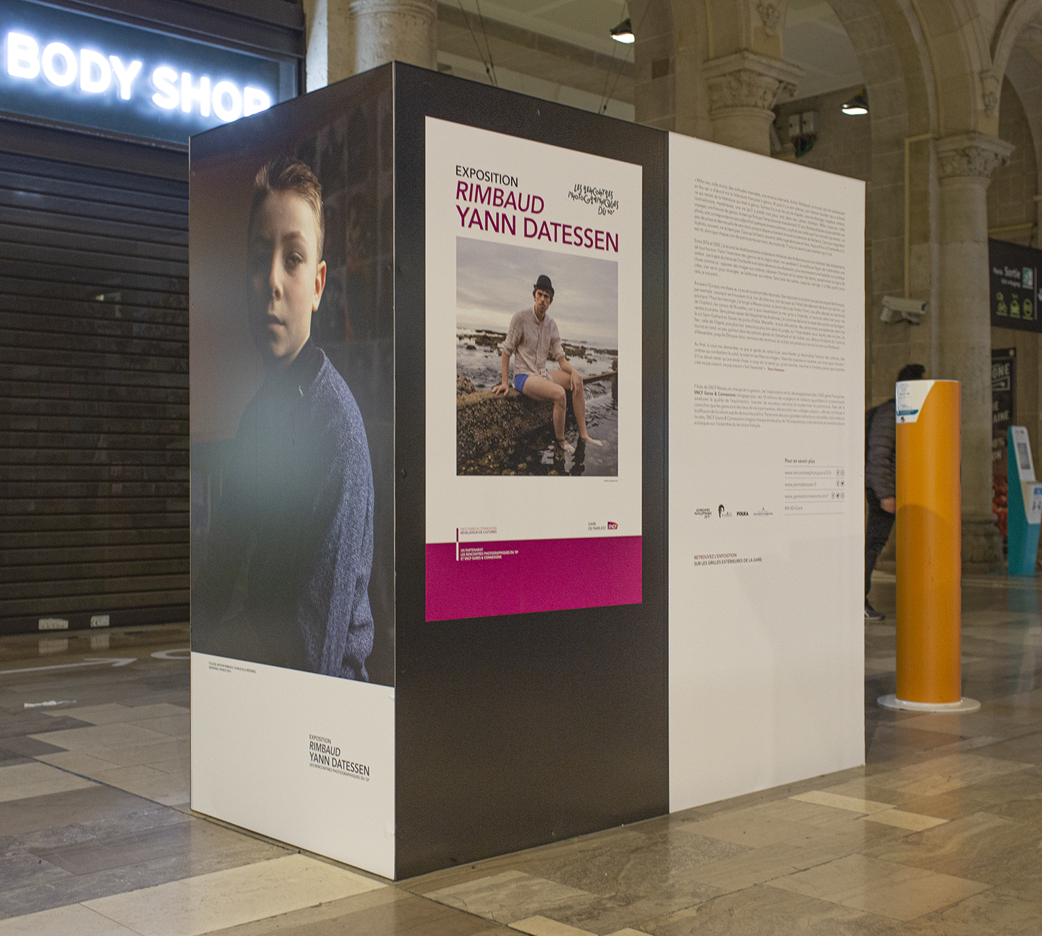 Entre le 05 Novembre et le 15 Décembre 2021, ma série RIMBAUD a été installée dans les gares de St-Charles Marseille, Paris Gare de l’Est et Charleville-Mézières ainsi qu’à l’hopital marseillais de la conception et au pied du musée A.R. le long de la Meuse, à Charleville.
