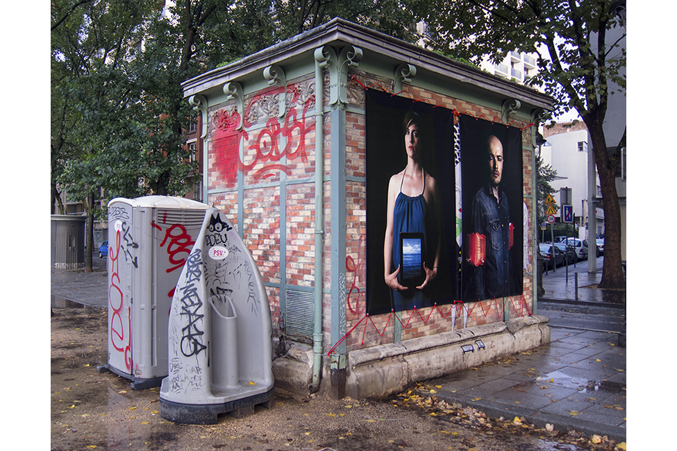 The sun came out last weekend, so I wanted to finally contemplate the fruit of my efforts. Except that at a public exhibition one must interact with the viewers, that is one must confront others, all others and not just those who like images… The latter are kind enough to smile with their eyes, stroll by, and thank me with benevolent silence. Some, whom I rubbed the wrong way, go out of their way to find me on the web, to insult me, drag me through the mud, while others take advantage of my presence, as I remove tags and mend tears, and accost me: “what does that mean?” The tone is often challenging, more rarely curious and innocent, and I explain to them sheepishly: “this is a photographic itinerary that starts over there and ends over here, it tells the story of a couple but one could also say that… etc.” The explanations are not enough: “ok, but other than that, what does that mean?” And while I answer the skeptics, sometimes the iconophobes, those who mean business, flock around, eye me scornfully, and finally let it out: “so, it’s you the ‘artiste’? Well… You listen to me: this is a disgrace, who gave you permission to do this? It’s an absolute outrage, get this out of here right this minute!”